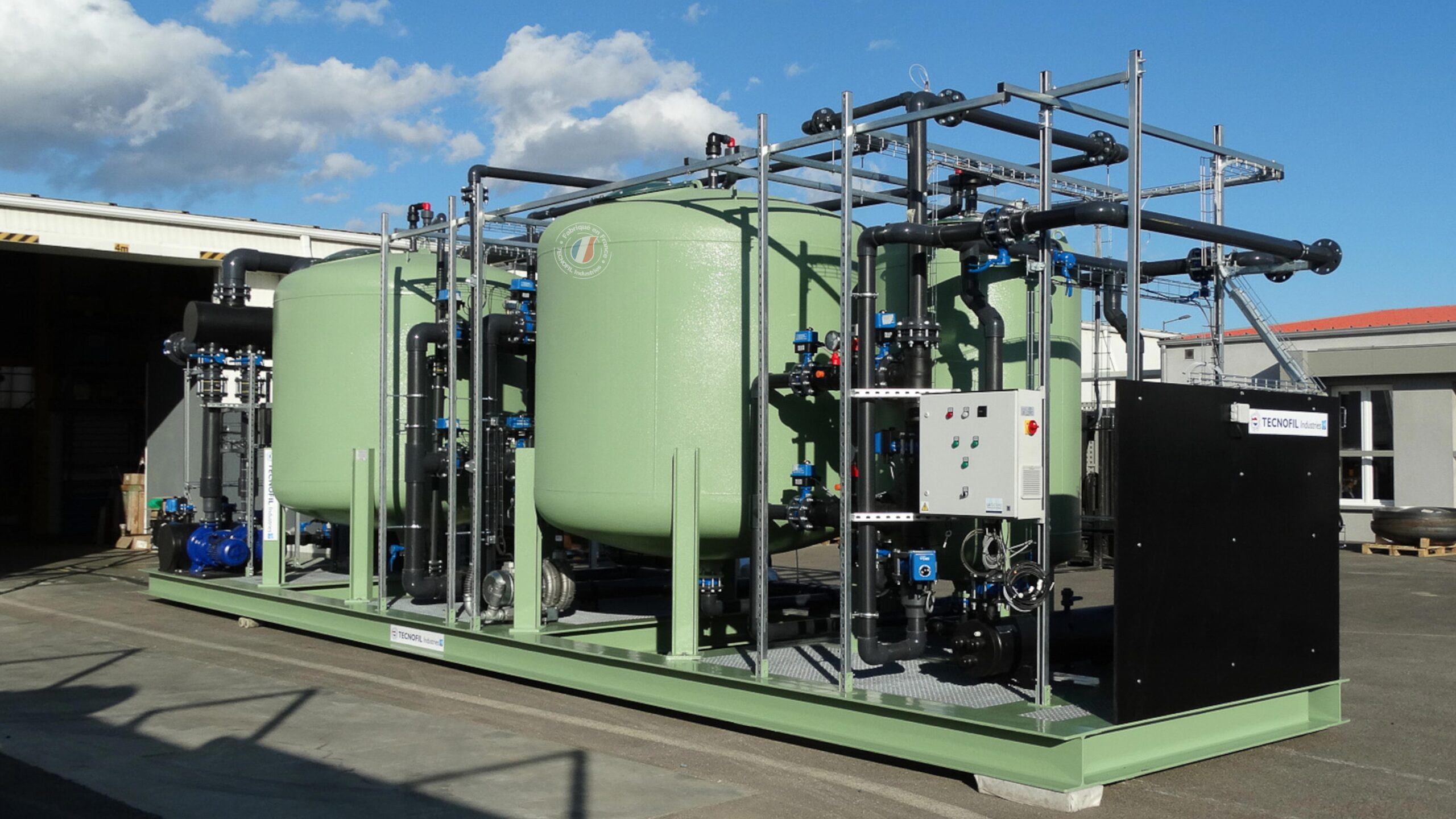 Le matériel pour le traitement des eaux est fabriqué et prémonté dans nos ateliers. Nous venons ensuite l’installer et le raccorder dans un conteneur maritime. Cette approche présente plusieurs avantages, tels que la réduction de la durée de chantier et la diminution des nuisances de circulation pour les riverains lors de l’installation sur site.